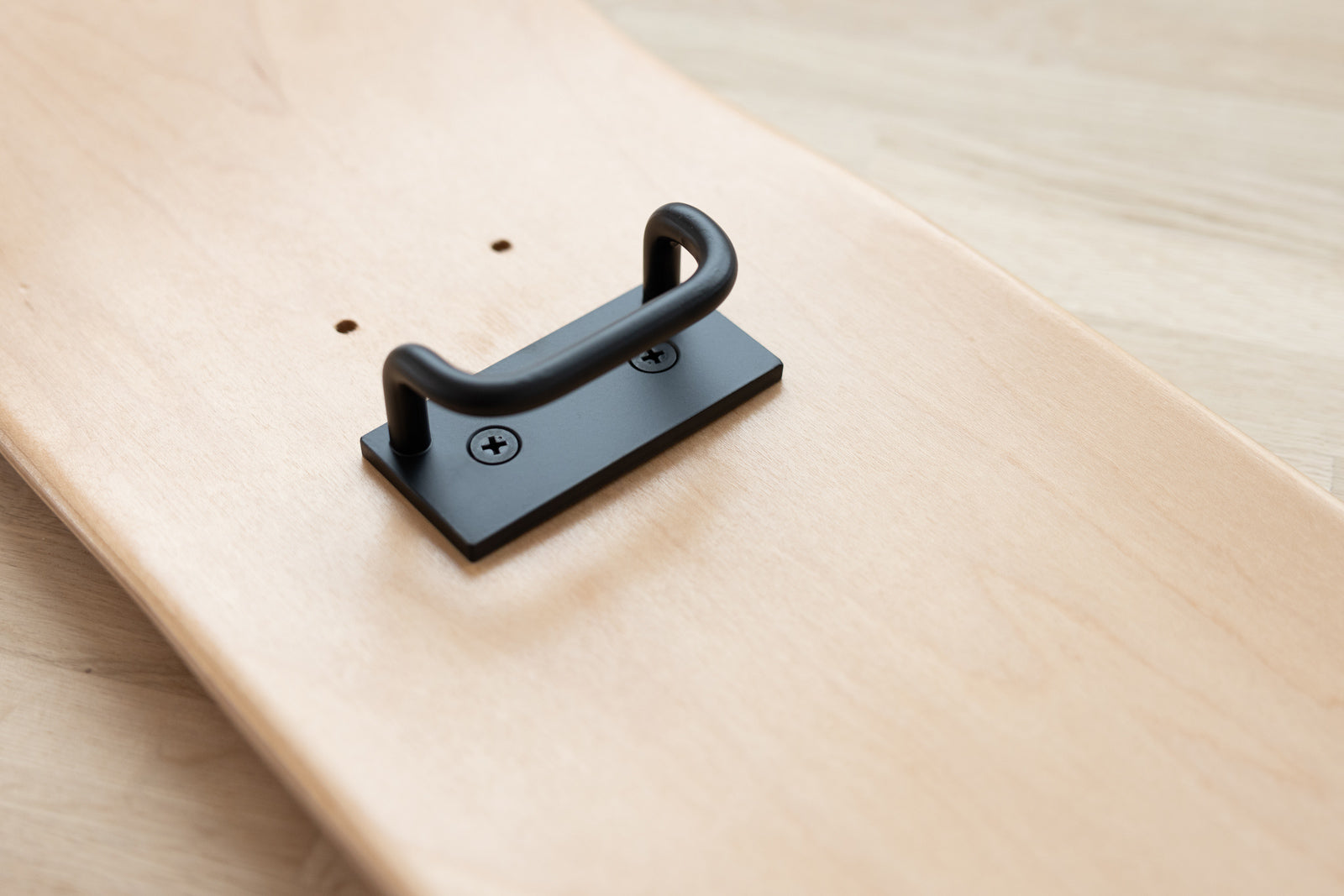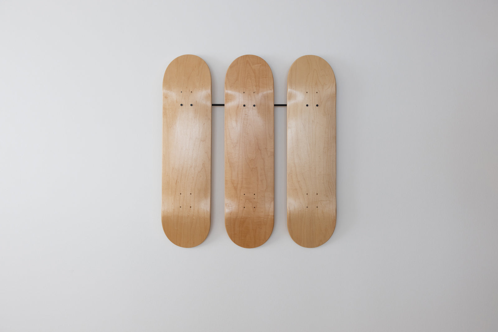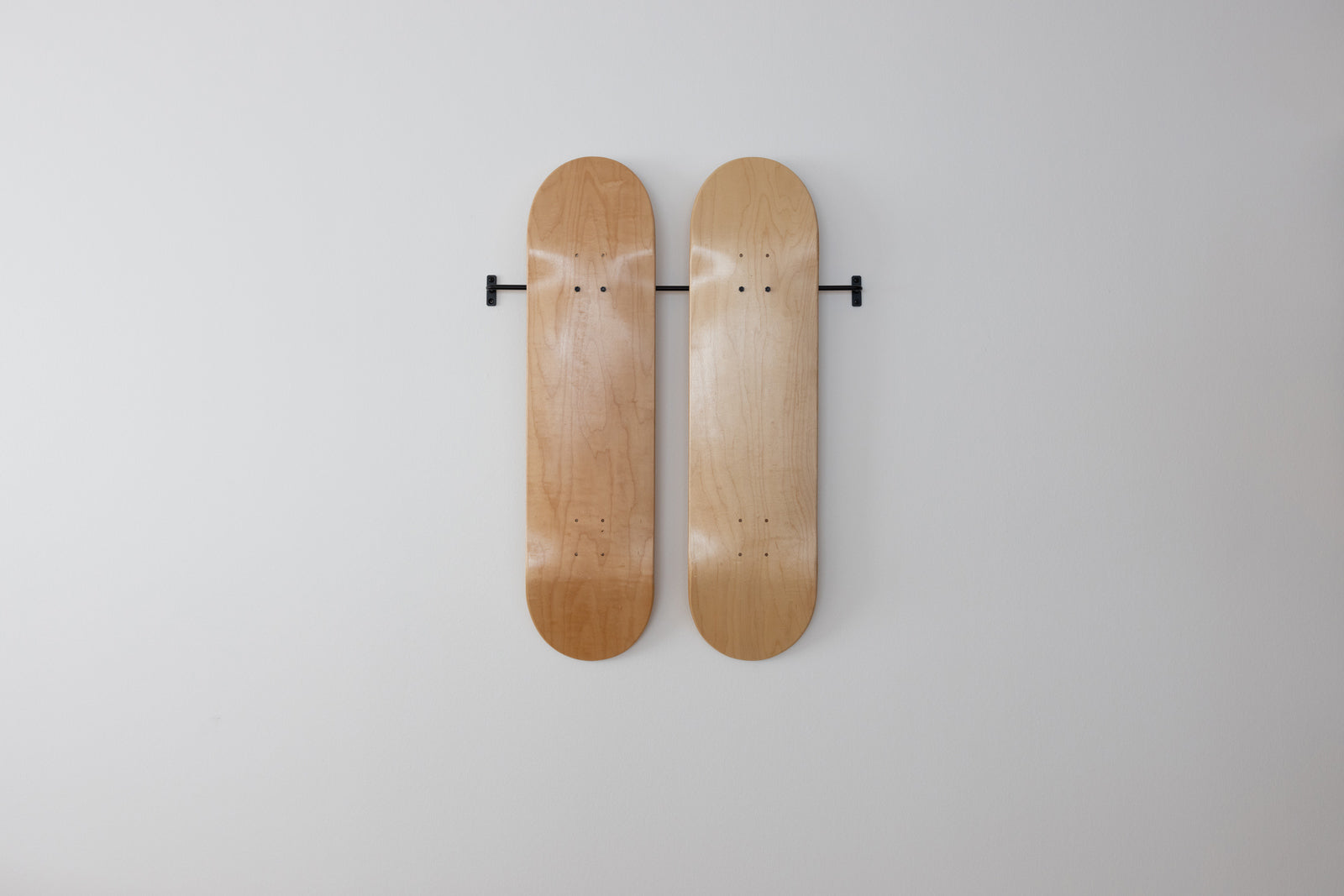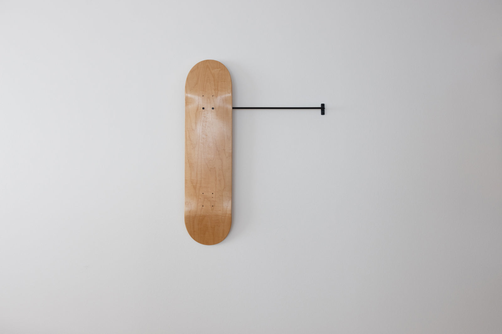 スケートボードを壁面にディスプレイするためのブラケットです。本製品をスケートボードに取り付け、壁に設置された Iron Bar に掛けるだけなので、配置替えも容易にできます。板の枚数や配置に応じて、バーの長さや数を変えてご使用ください。