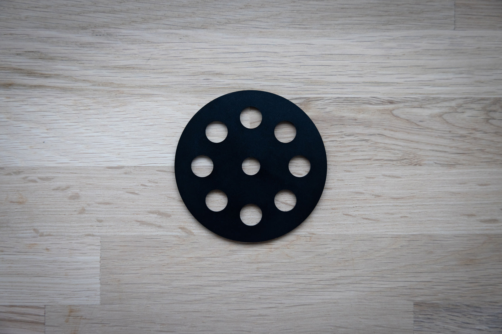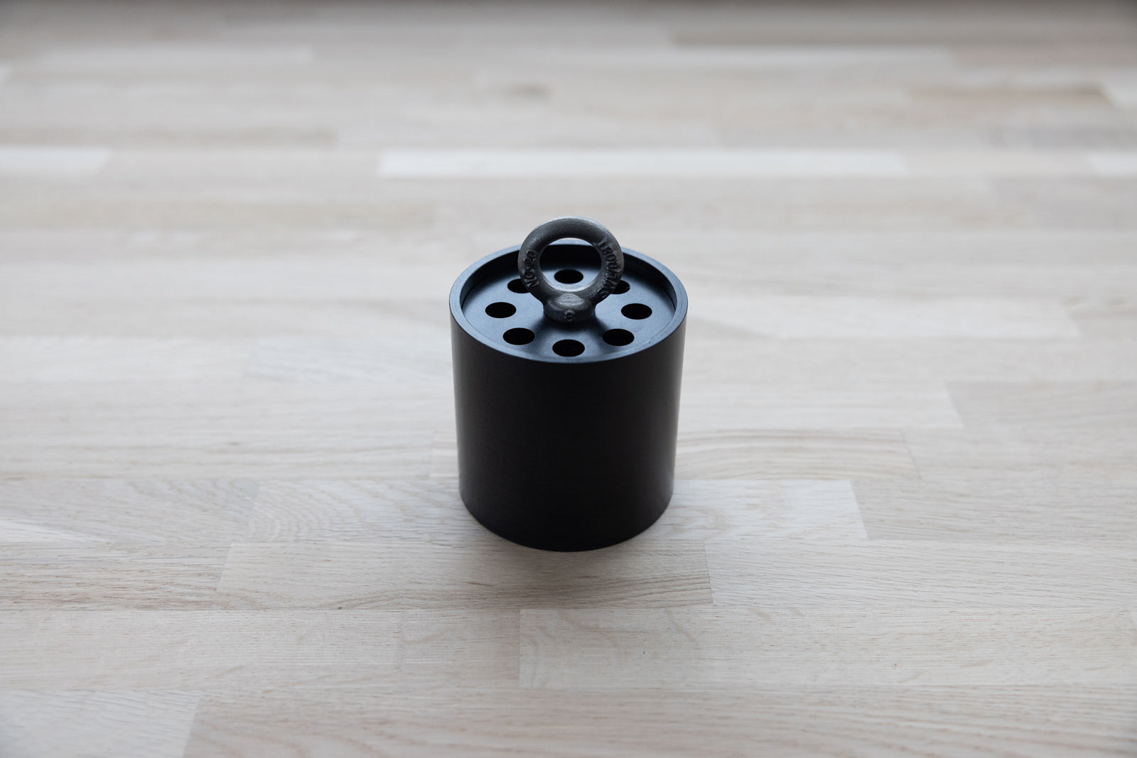 炭素鋼鋼管を削り出して製作した鉄製灰皿です。鉄を高温に加熱しながら表面処理を行い黒く染めています。塗装と違い塗料の剥離もなく、赤サビの発生もしにくくなっています。