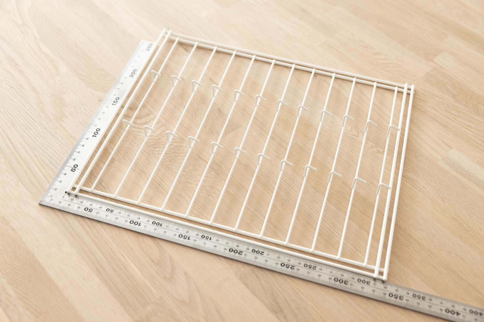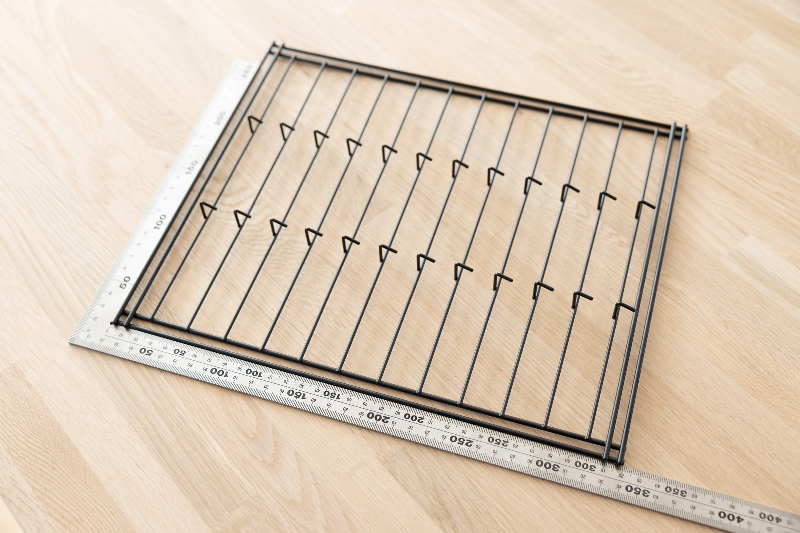 プラモデル鉄製パーツストレージ PRS-H010, PRS-H020 用の12ラインハンガーです。ピッチは25mmで、10ラインと比べて5mm間隔が狭くなっています。小さなパーツや、間隔を空けて吊るしたいときには収納量を上げることができます。全てのハンガーにランナーを吊したときは多くの場合、絡みが発生し作業効率が落ちる可能性が高くなります。