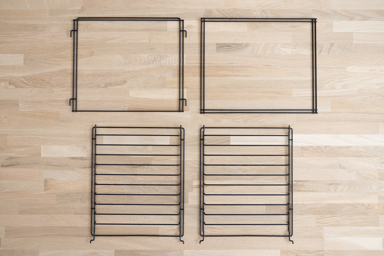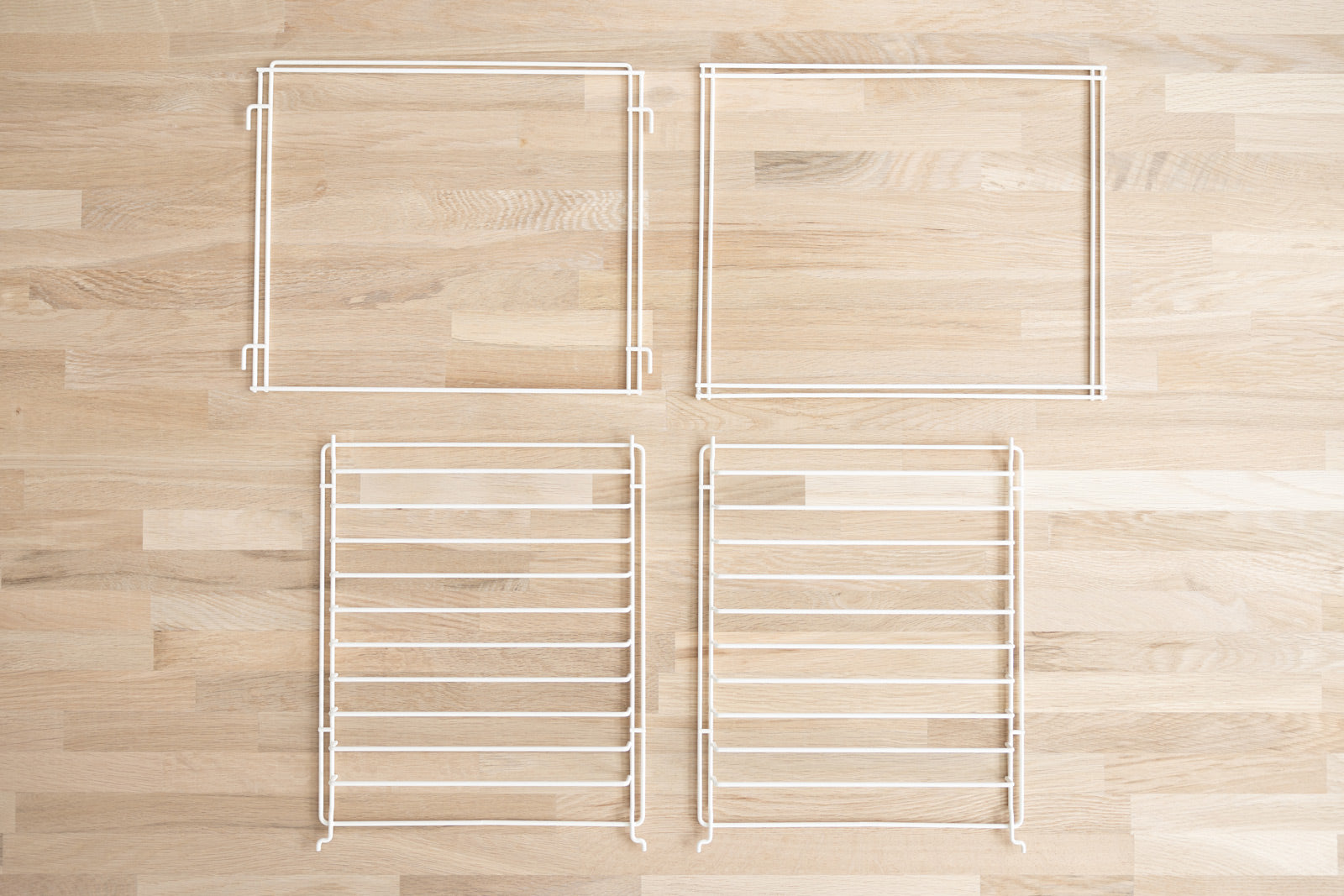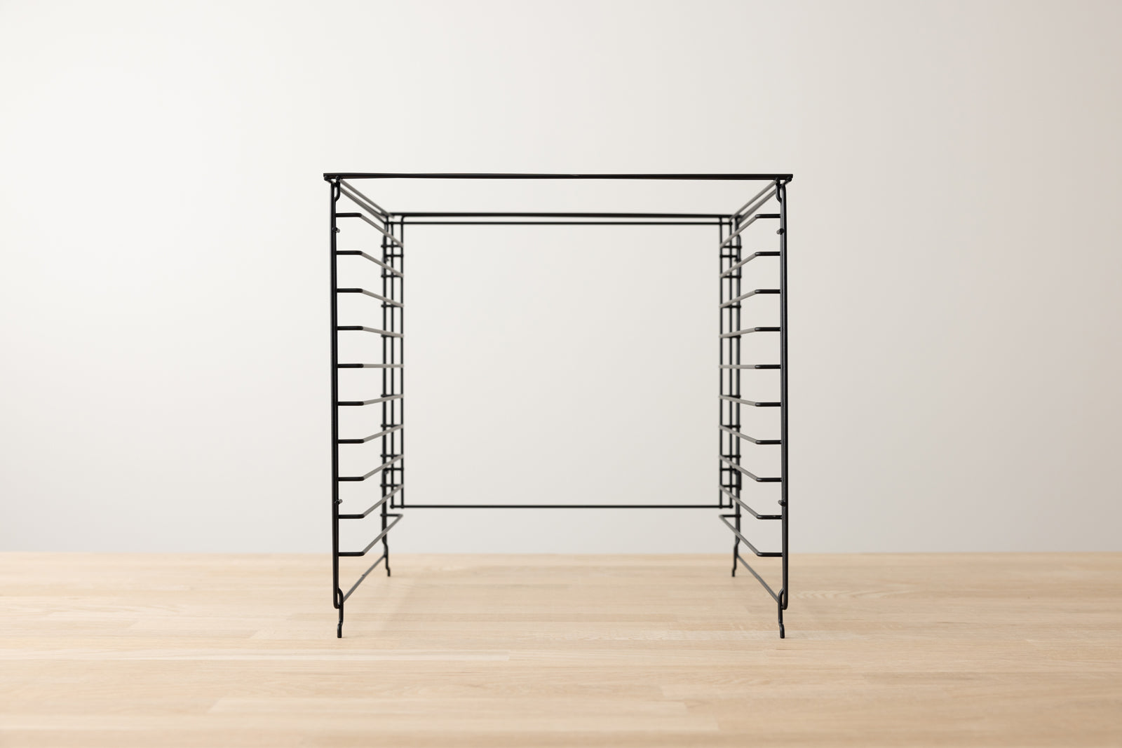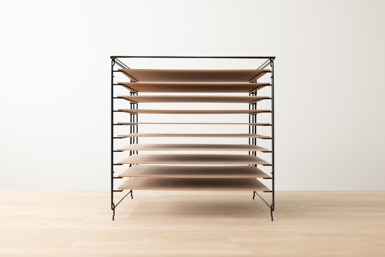 プラモデル用の鉄製パーツストレージです。組み立て工程で散乱しがちなランナーを各階層へ分けることによって絡まりを防ぎ、作業の効率を高めることができます。また、複数のストレージをスタックすることで、面積あたりの収納量が増え、作業場の確保につながります。棚は10段で、大きなランナーは開いた背面に逃すことが可能です。 設置収納に工具などは不要で、簡単に組み立てることができます。