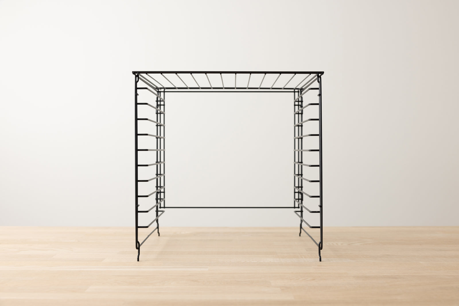 プラモデル用の鉄製パーツストレージです。組み立て工程で散乱しがちなランナーを各階層へ分けることによって絡まりを防ぎ、作業の効率を高めることができます。また、複数のストレージをスタックすることで、面積あたりの収納量が増え、作業場の確保につながります。棚は10段で、大きなランナーは開いた背面に逃すことが可能です。 設置収納に工具などは不要で、簡単に組み立てることができます。